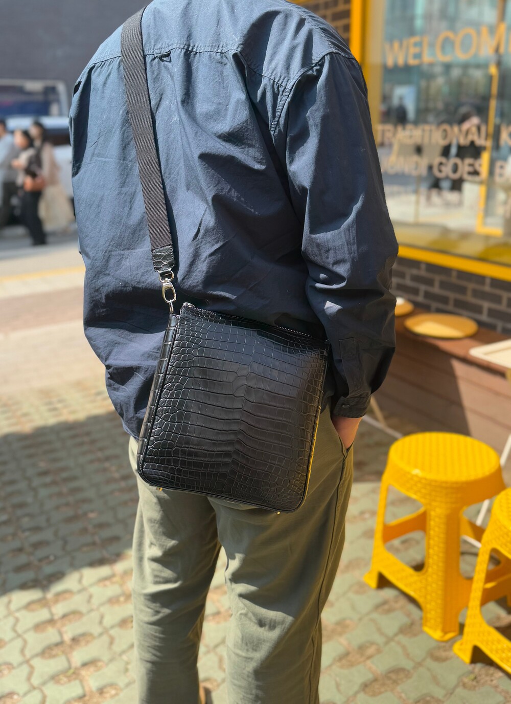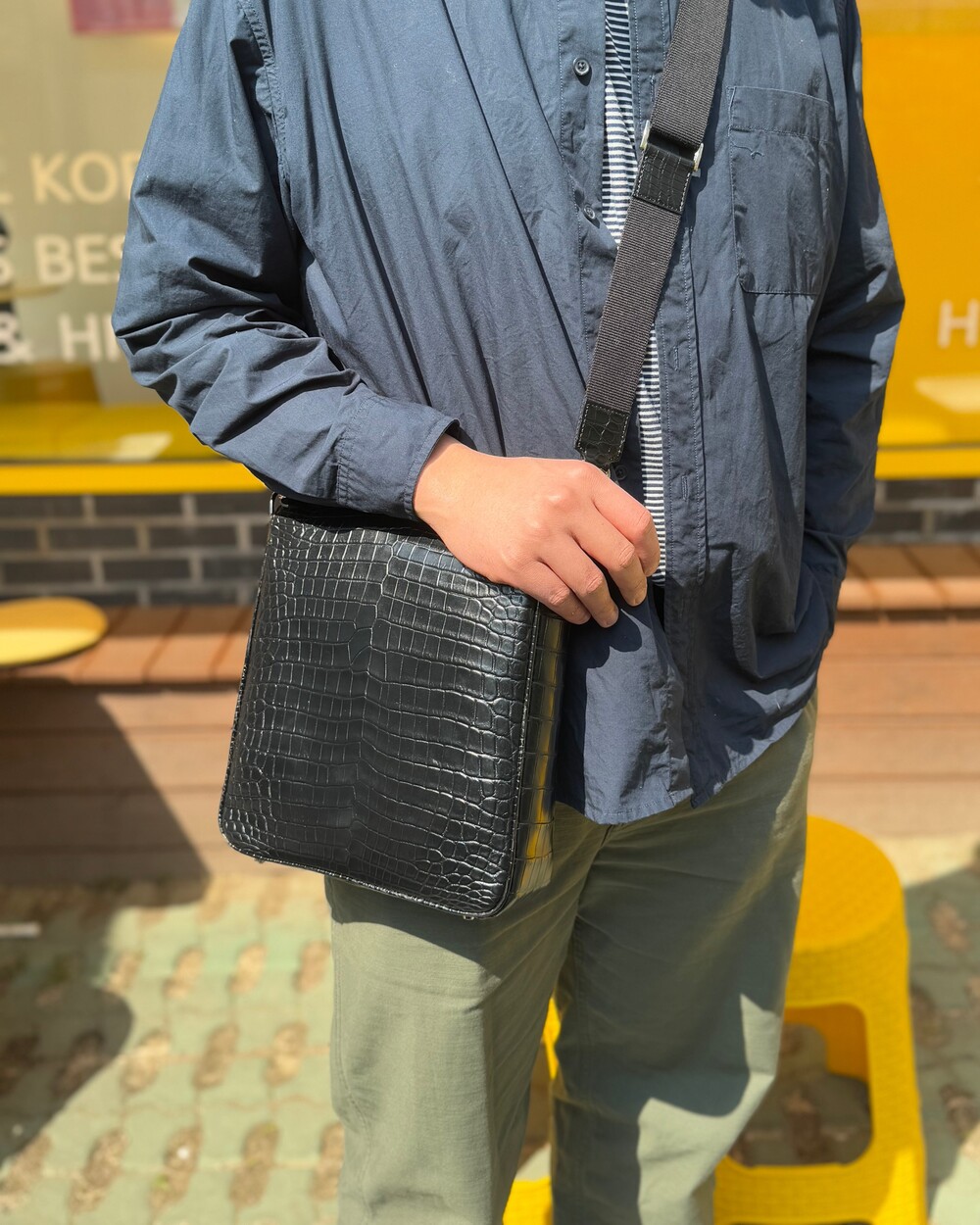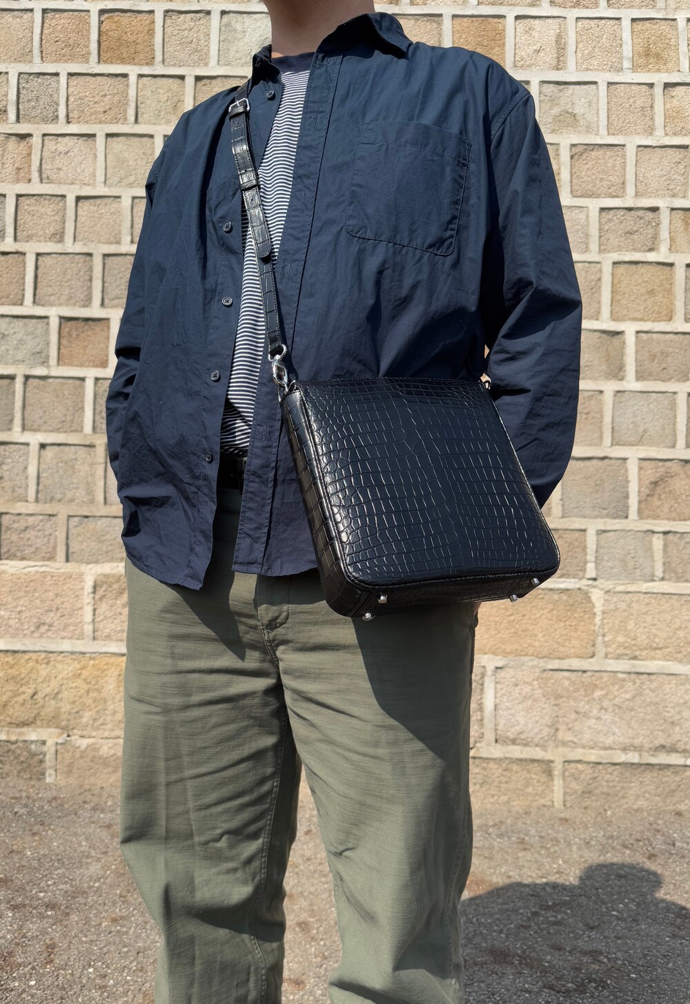 잘 어울리는 악어가죽 크로스백입니다.