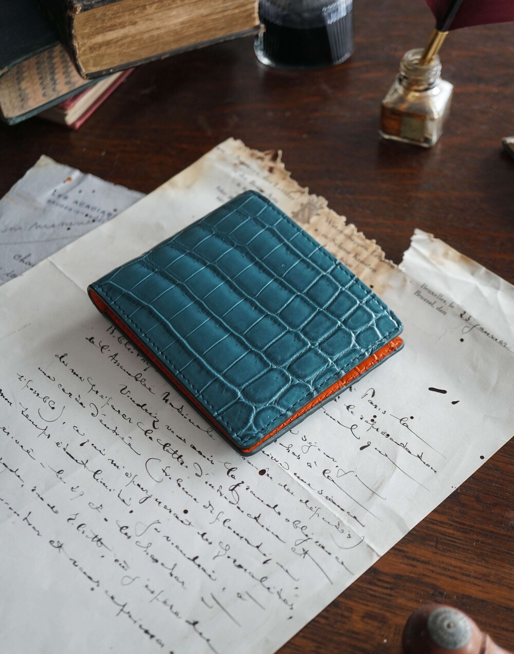 코발트 블루 - 오렌지 악어가죽 내피 (주문제작)