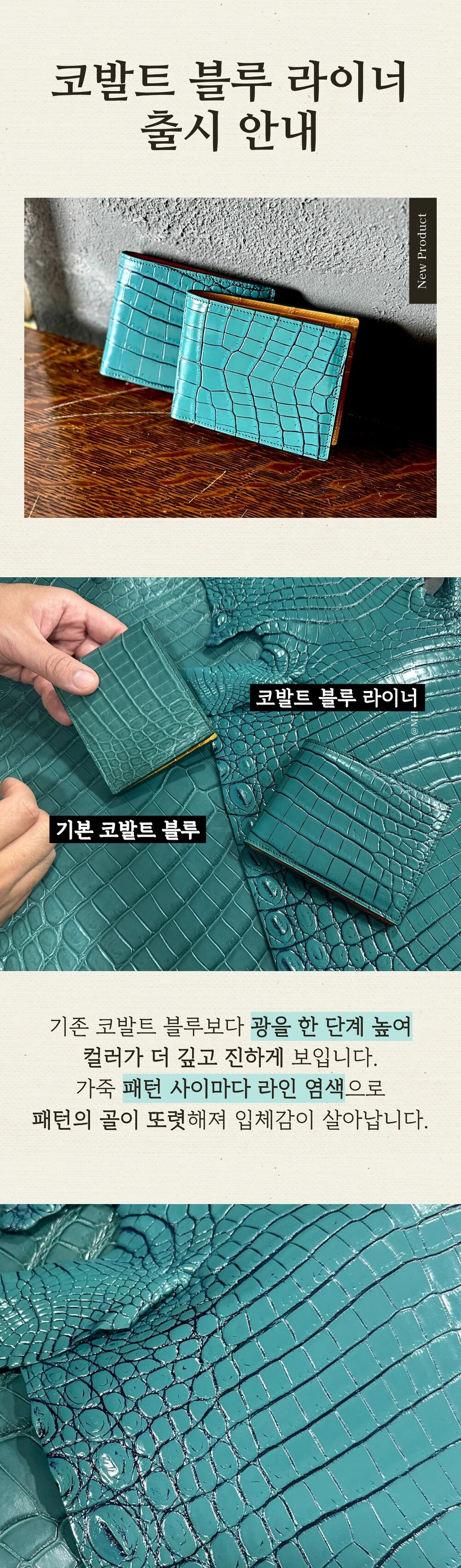 코발트 블루 - 기타 색상 악어가죽 내피 (주문제작)