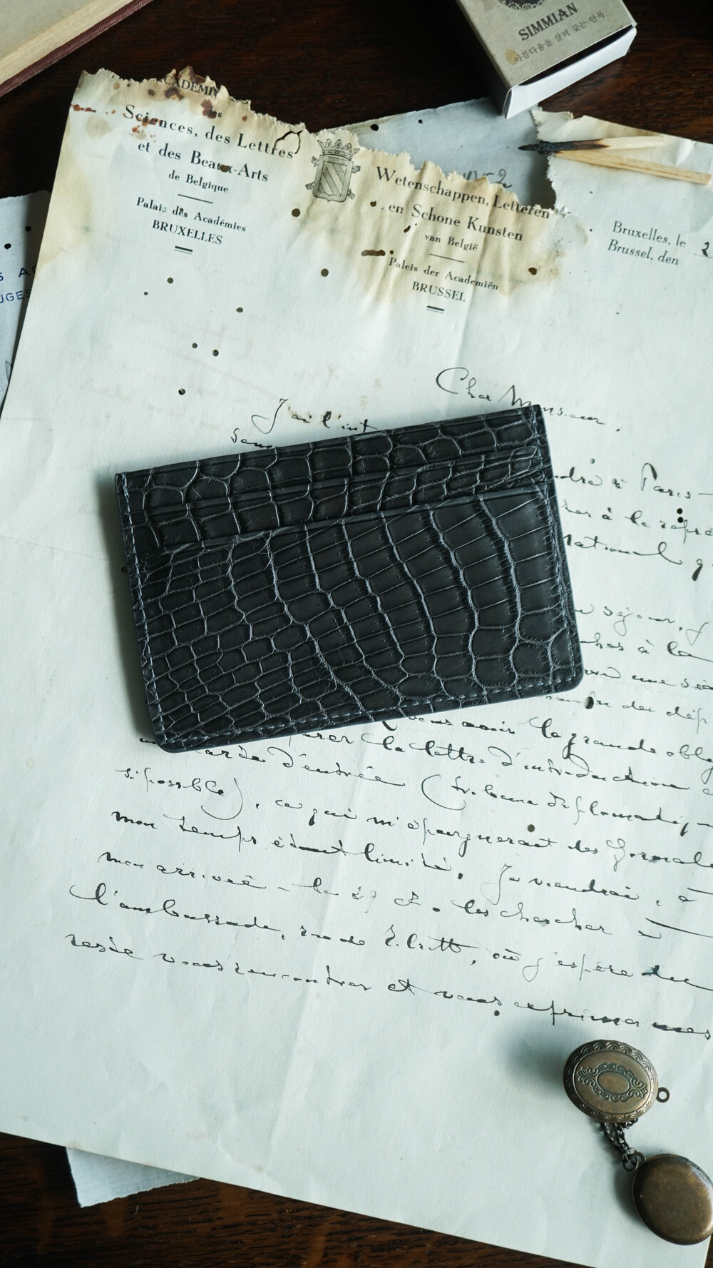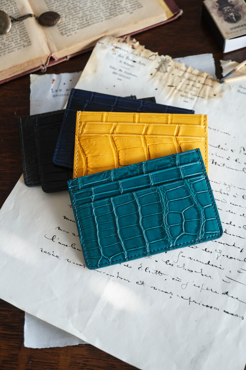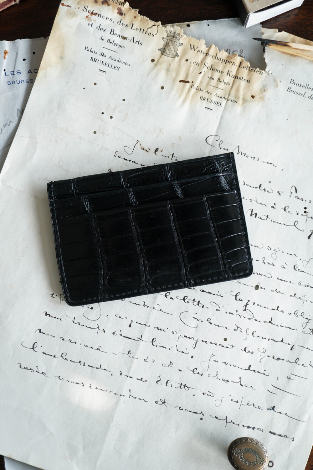 고급스러운 악어가죽 지퍼로 제작되었습니다.
