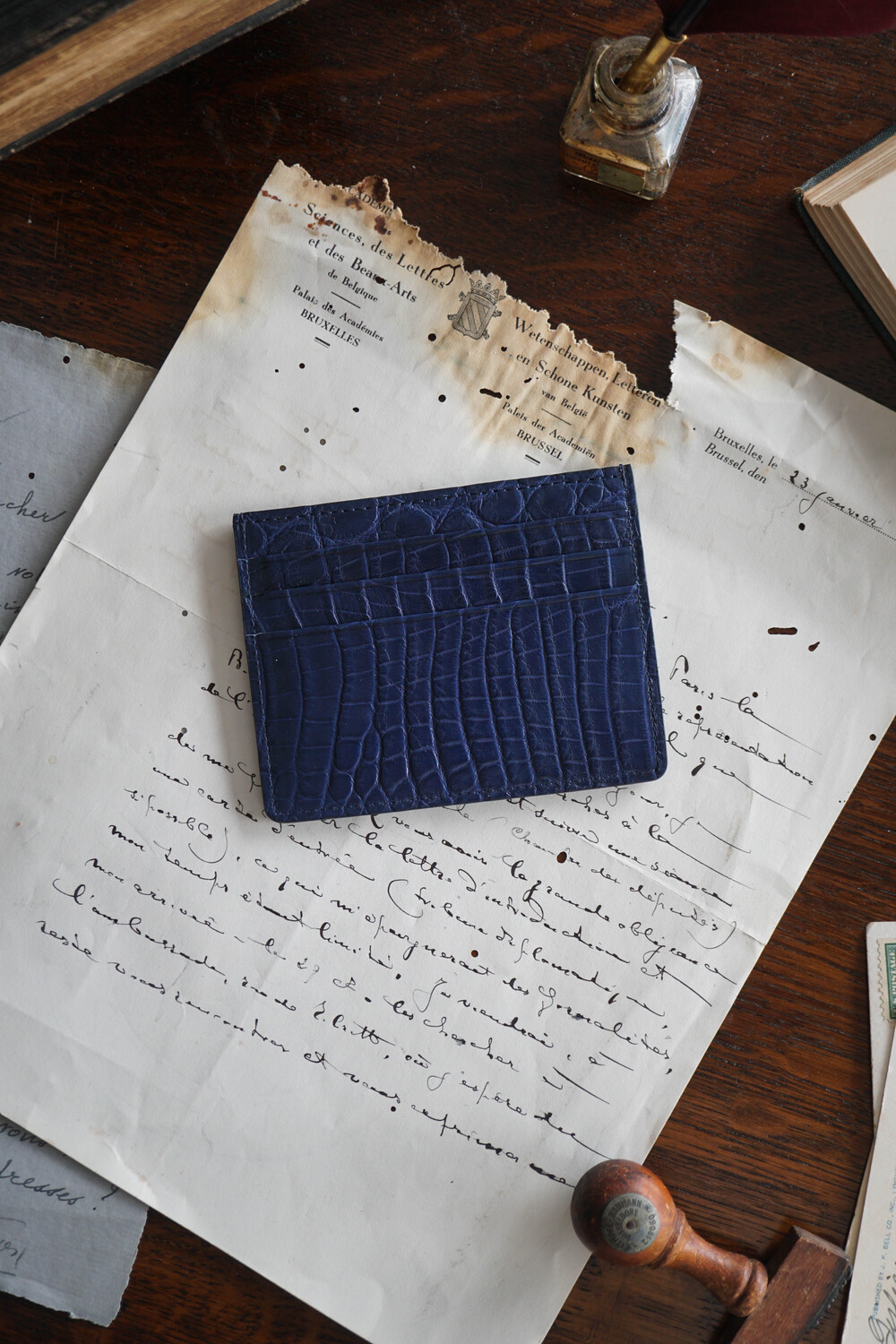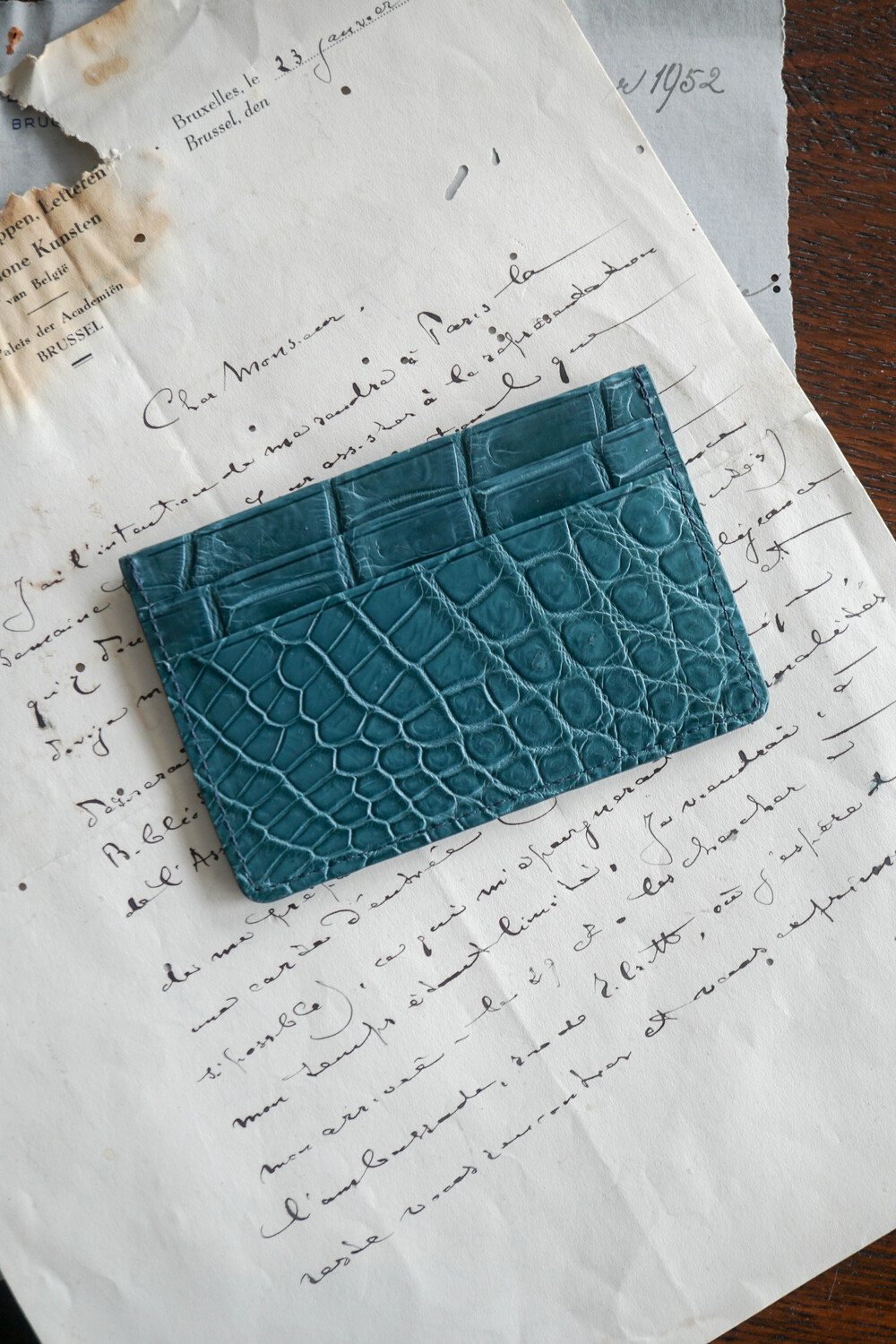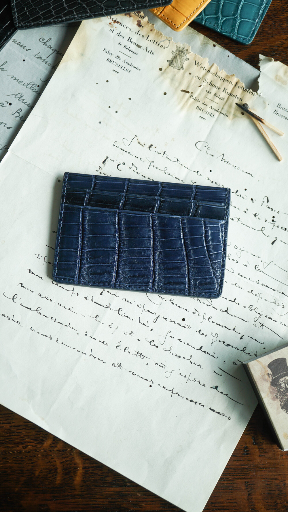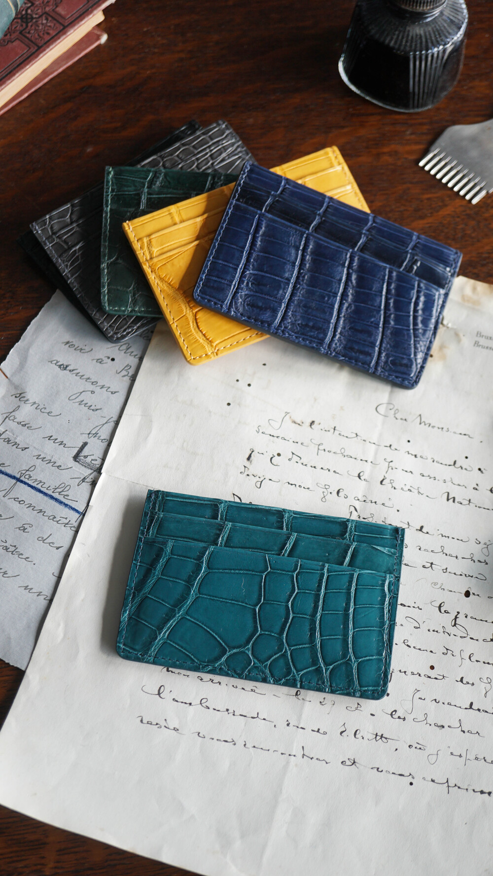 고급스러운 악어가죽 지퍼로 제작되었습니다.