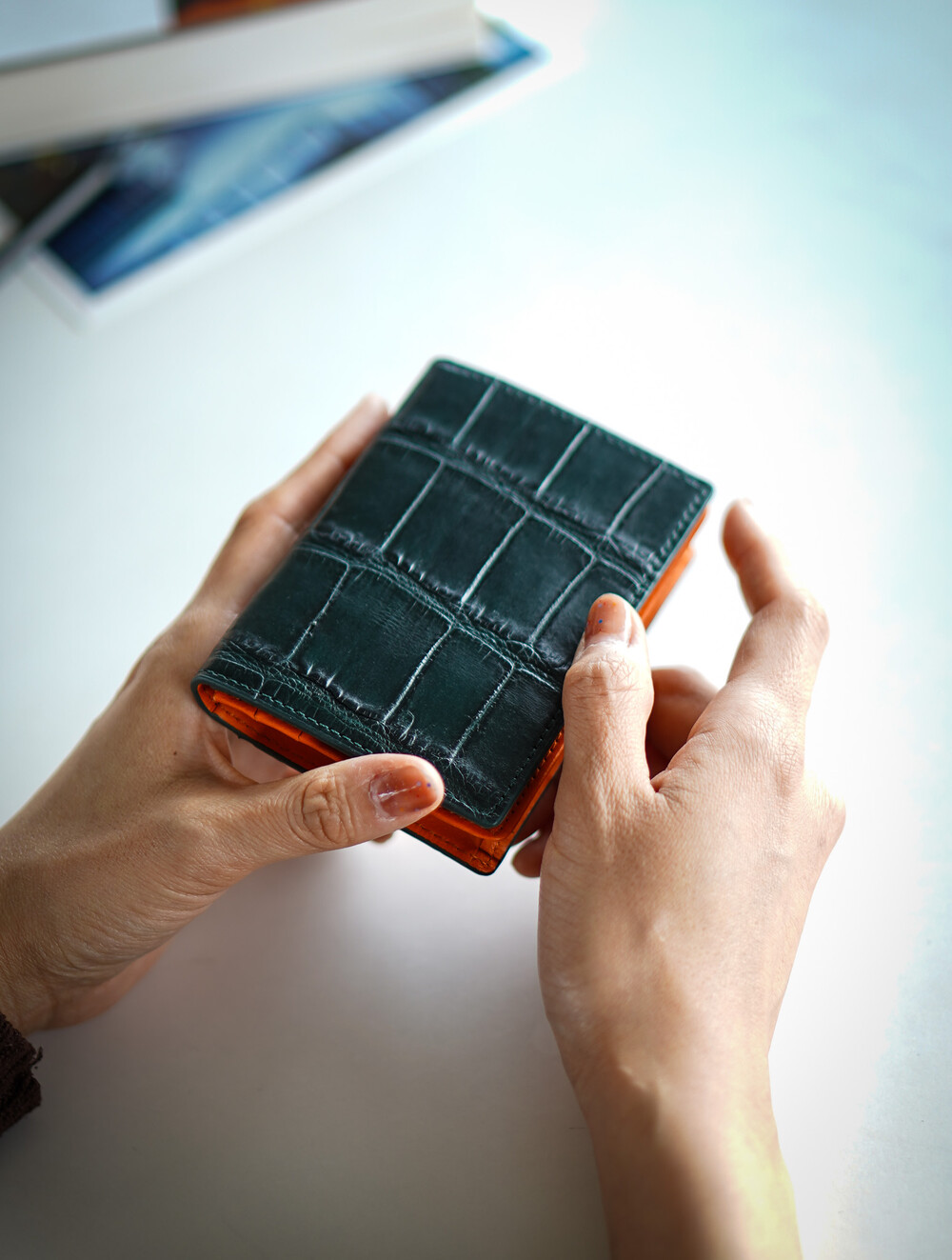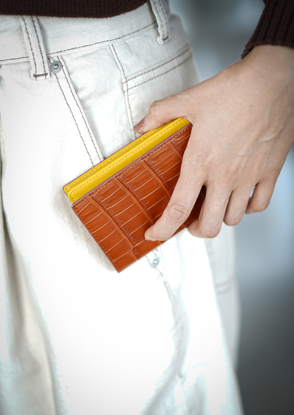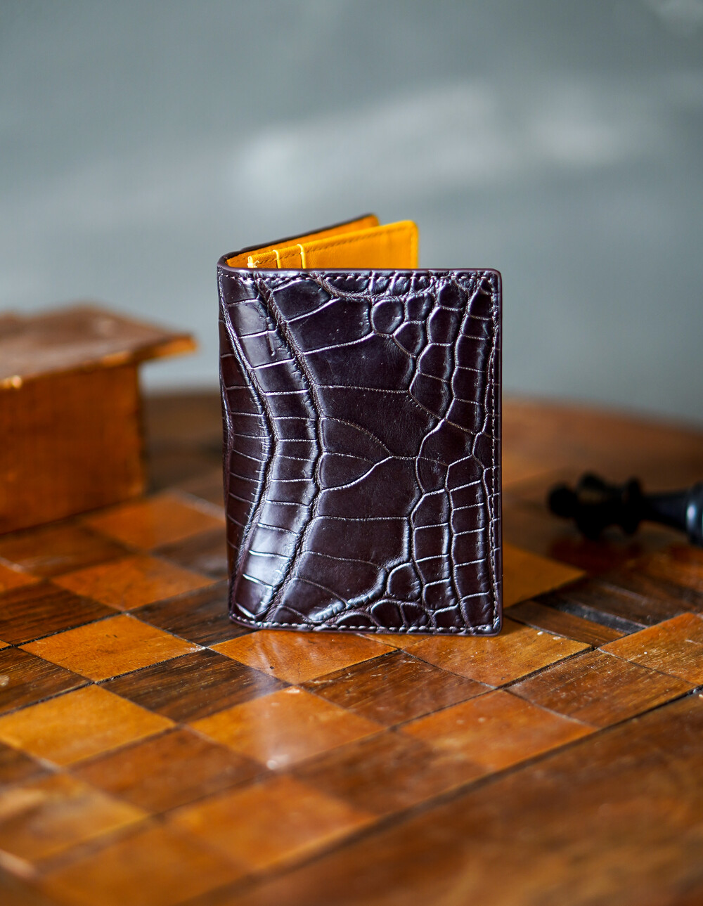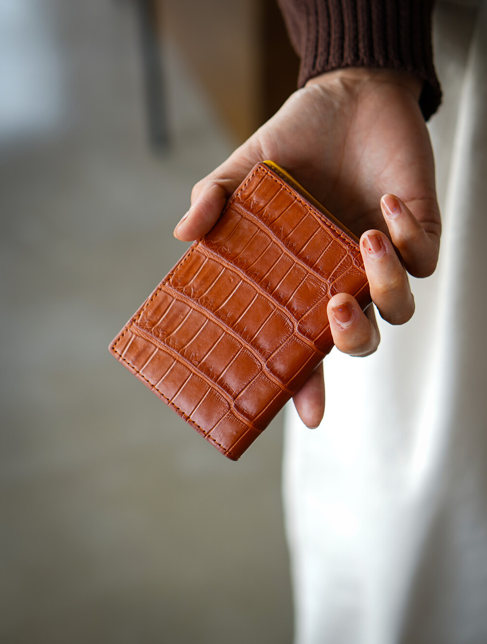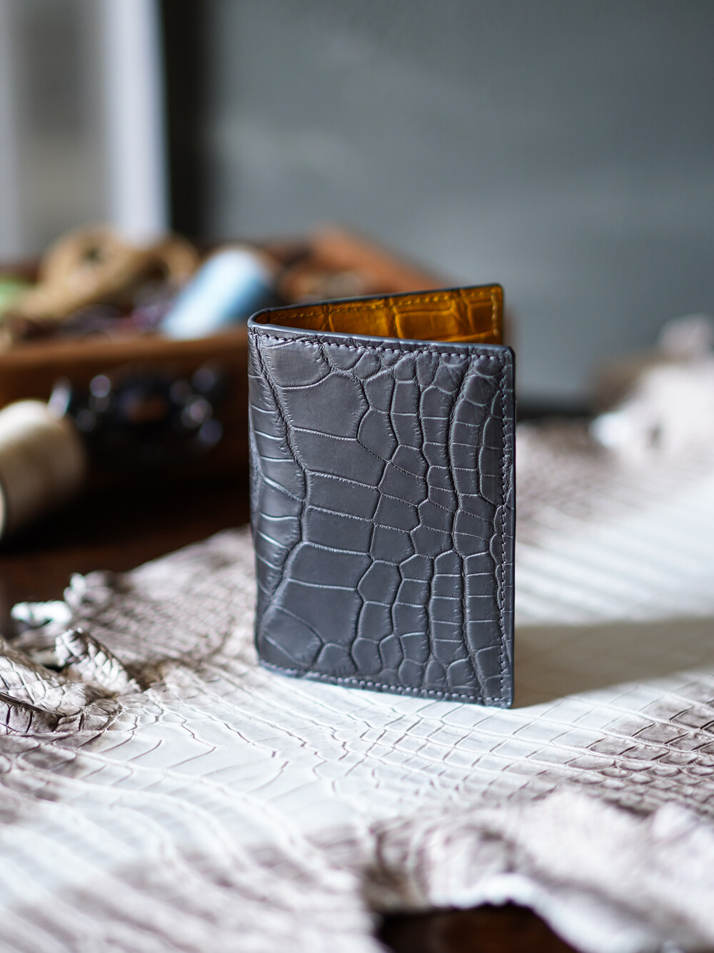 유광 악어가죽은 화려한 색상으로 높은 인기가 있지만 제작 과정에서 크랙이 발생한다는 어쩔 수 없는 한계를 지니고 있습니다. 무광 악어가죽은 오랜시간 사용하면 자연스럽게 광이 생기는데, 자연스러운 광택이 생기는데까지 비교적 오랜 시간이 걸린다는 단점이 있습니다. 글로시 에디션은 무광에서만 생기는 이 자연스러운 광택을 인위적으로 끌어냈지만 어떠한 크랙도 발생하지 않는 제품으로, 화려하지만 필연적으로 크랙이 발생할 수 밖에 없는 유광 악어가죽의 한계를 극복했습니다.