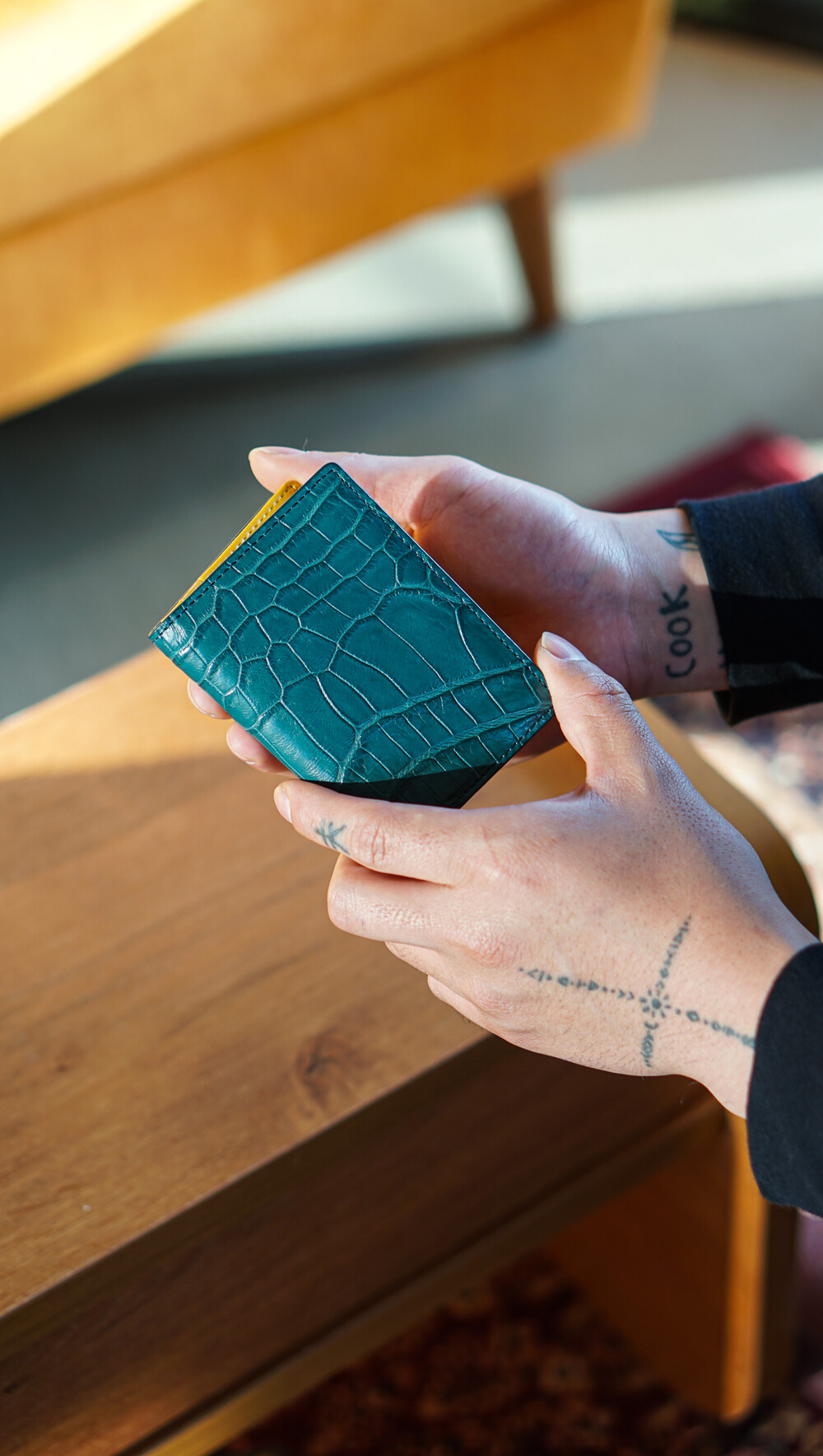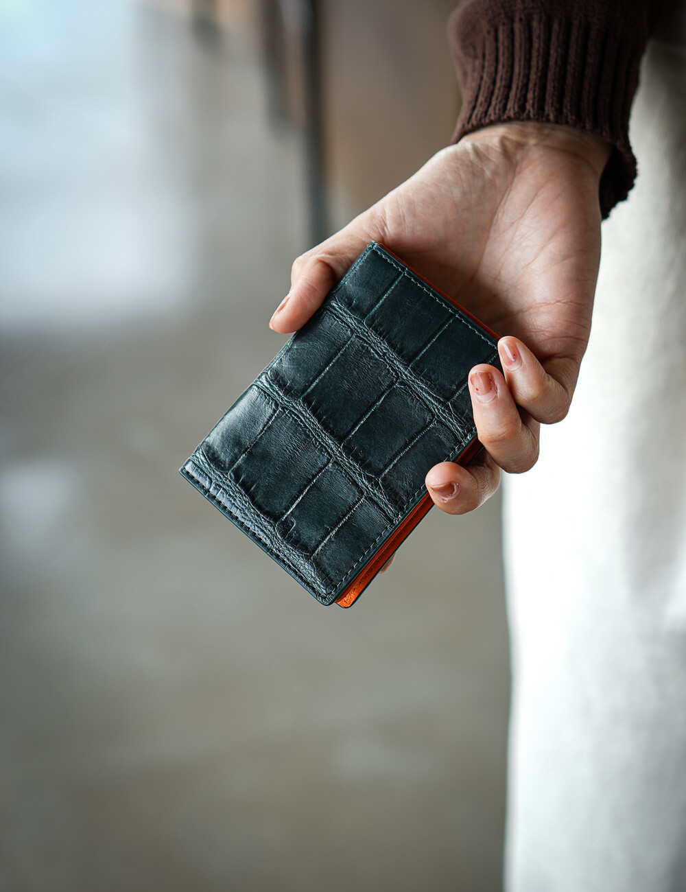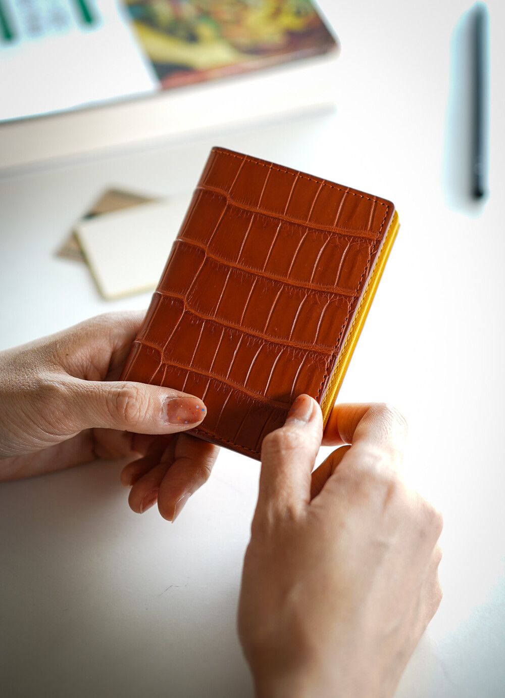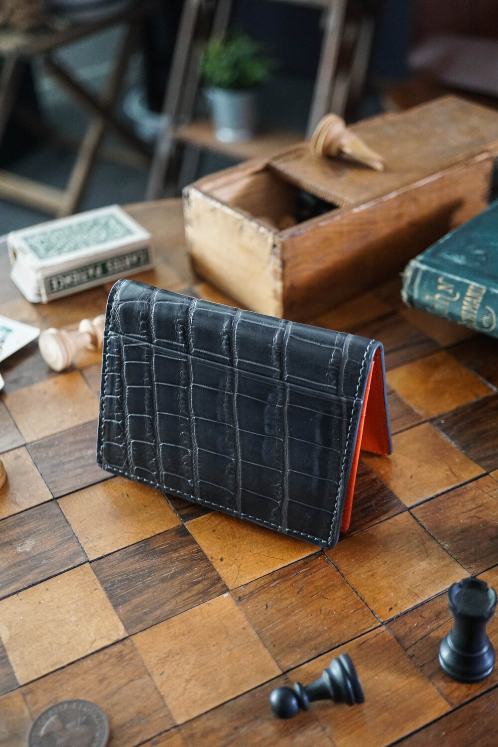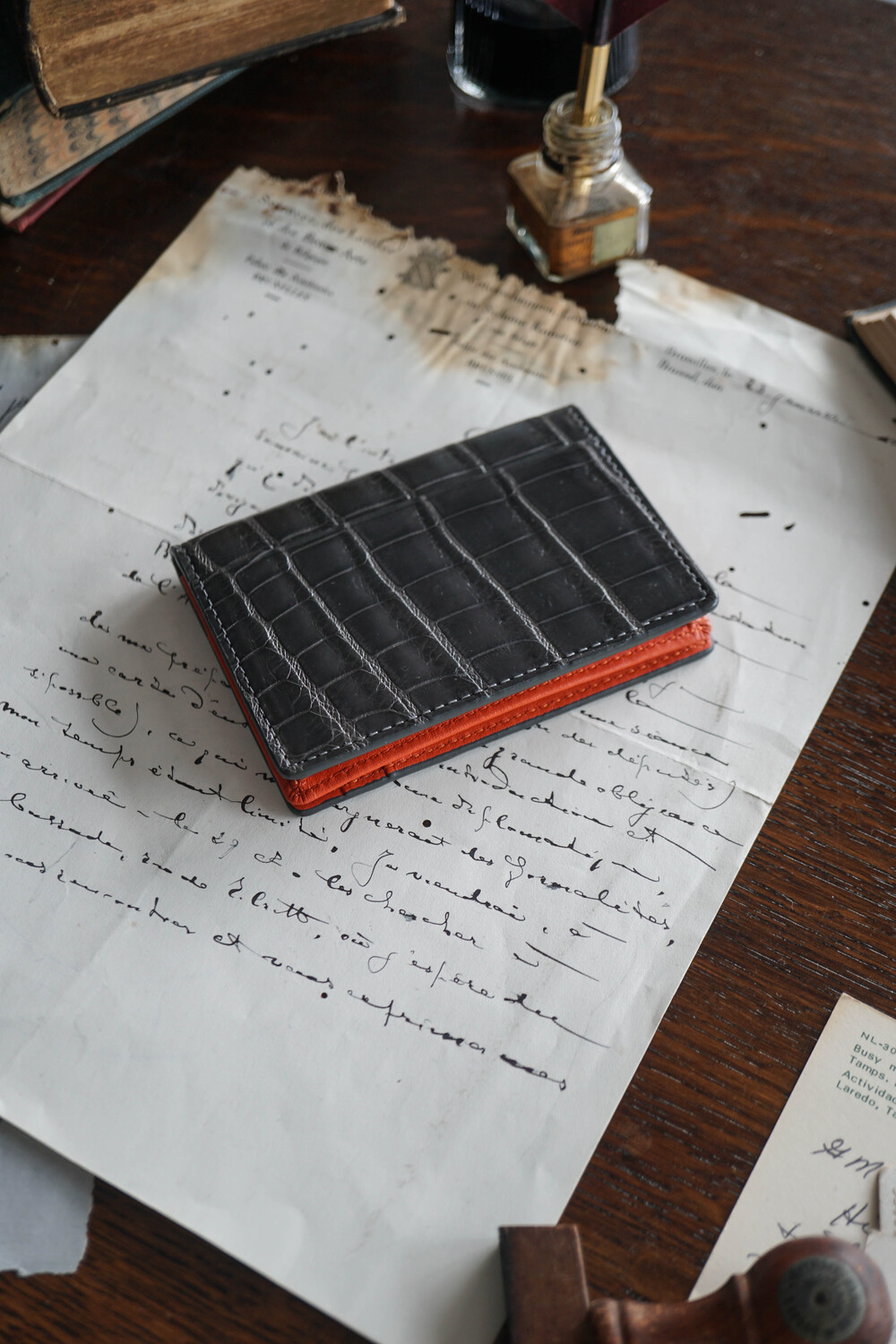 유광 악어가죽은 화려한 색상으로 높은 인기가 있지만 제작 과정에서 크랙이 발생한다는 어쩔 수 없는 한계를 지니고 있습니다. 무광 악어가죽은 오랜시간 사용하면 자연스럽게 광이 생기는데, 자연스러운 광택이 생기는데까지 비교적 오랜 시간이 걸린다는 단점이 있습니다. 글로시 에디션은 무광에서만 생기는 이 자연스러운 광택을 인위적으로 끌어냈지만 어떠한 크랙도 발생하지 않는 제품으로, 화려하지만 필연적으로 크랙이 발생할 수 밖에 없는 유광 악어가죽의 한계를 극복했습니다.