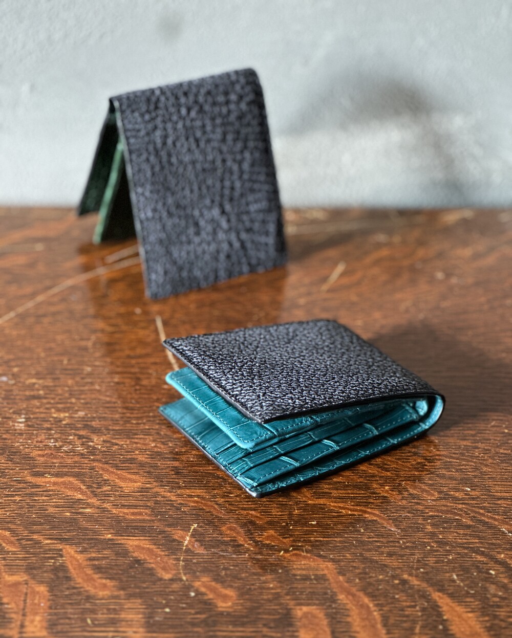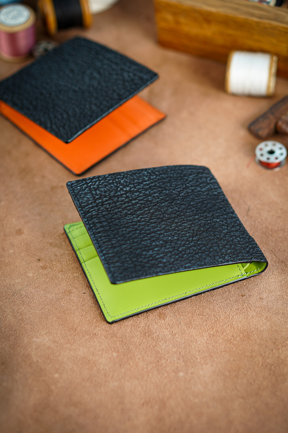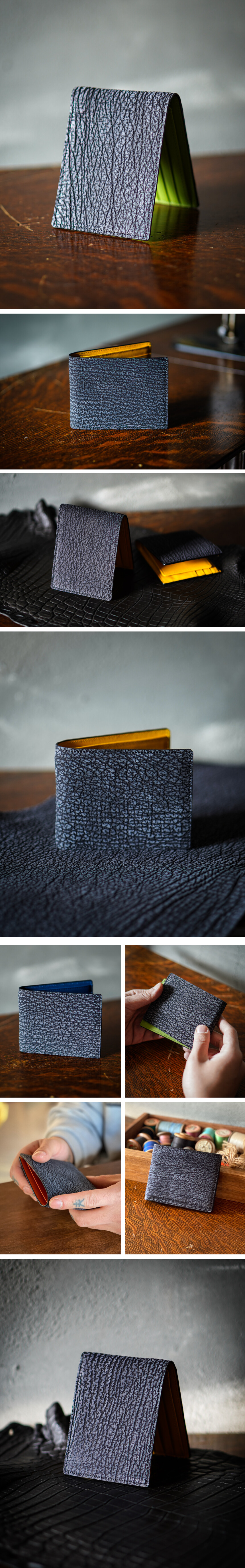 헤임달의 상어 반지갑은 블루 샤크의 가죽을 사용했습니다. 포획 된 상어가 아닌 양식으로 자란 상어라 가죽에 상처가 적고 영양상태가 좋습니다. 또한 상어 가죽의 특성상 인장력이 강하여 내구성이 매우 우수하며 특유의 줄무늬 패턴이 도드라집니다.