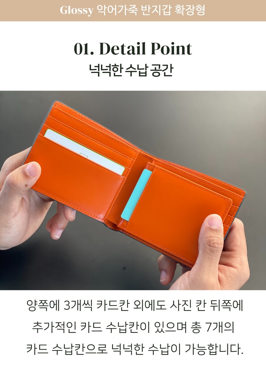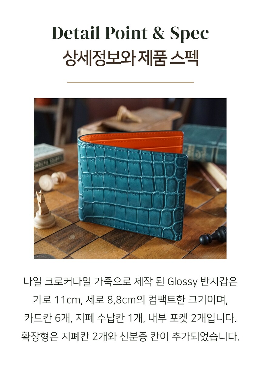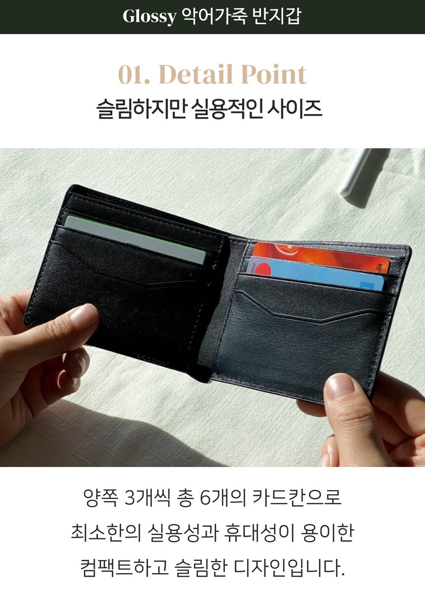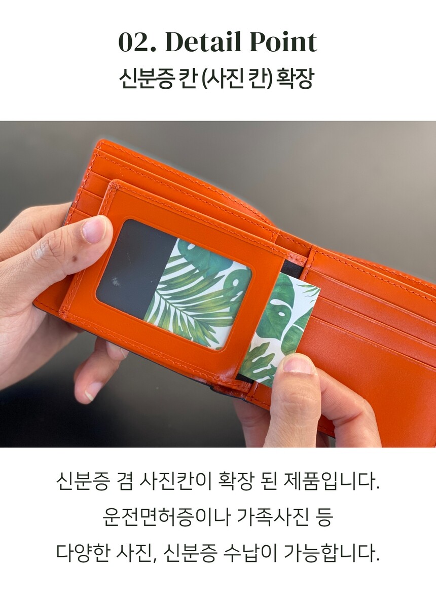 경공업적 생산방식에 이태리식 수제 생산방식을 접목시켜 아름다우면서도 내구력성이 강하게 제품을 설계 및 제작합니다. 지갑을 얇게하기 위해 지갑 내부에 나일론 소재의 안감과 재생 가죽을 적절히 사용하며, 바느질라인을 따라 세밀하게 진행된 피할은 스티치를 보호하며, 아이템을 멋스럽게 해줍니다.